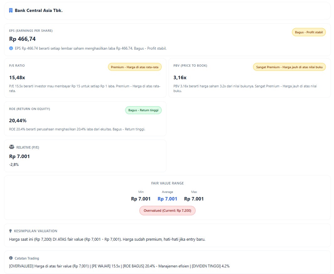 Data fundamental lengkap dalam bahasa sederhana. Cek apakah saham undervalued, valuasi wajar, dan profitabilitas sehat sebelum entry.